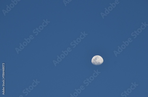 The watermark will not be included on Wall mural.: Half moon floating on blue sky in twilight background