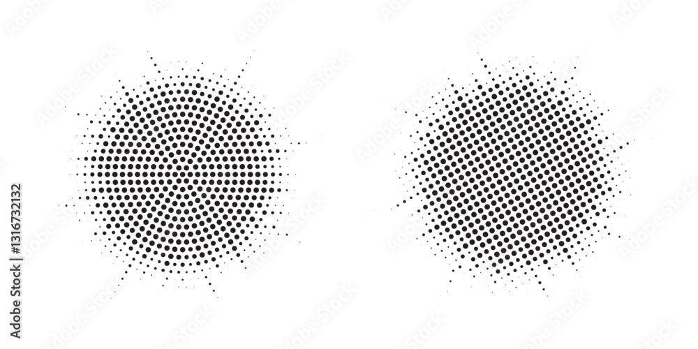 Wall mural halftone circle frame background set. round border icon using halftone random circle. grunge circula