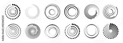 Wall mural : Halftone circular dotted frames set - set of black thick halftone dotted speed lines - speed lines in