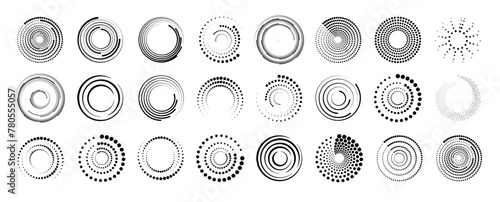 The watermark will not be included on Wall mural.: Halftone circular dotted frames set - set of black thick halftone dotted speed lines - speed lines in