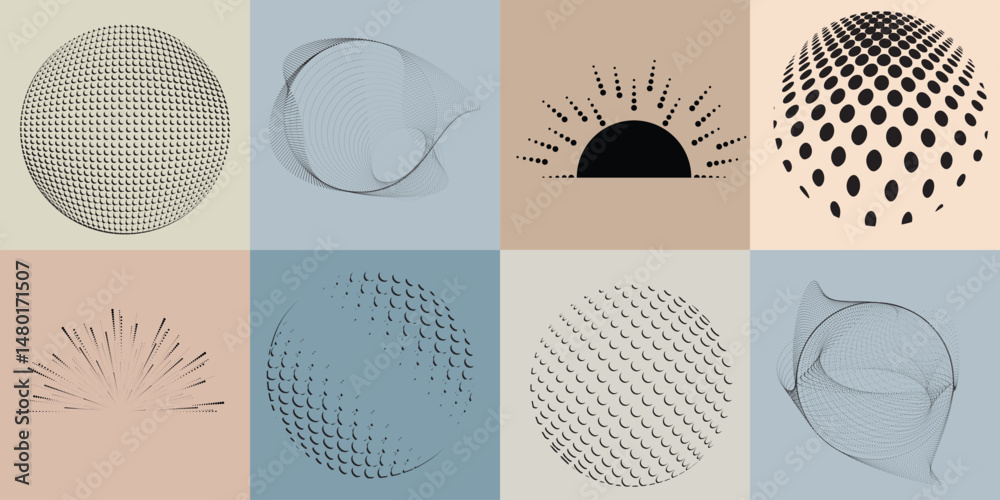 Wall mural halftone dots in circle form .rotate rounded shape vector illustration .rotating circles form a ring