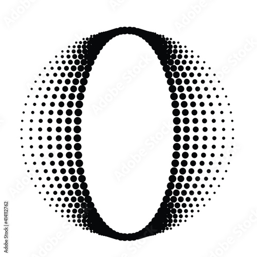 Wall mural halftone dots in circle form. letter o . round logo . vector dotted frame . design element
