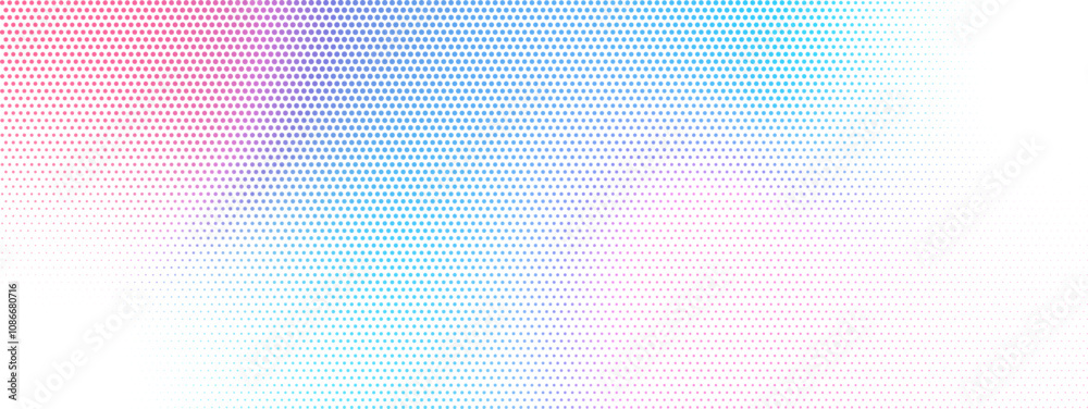 Wall mural : Halftone dotted textured colorful gradient long vector abstract background for overlay effect banner