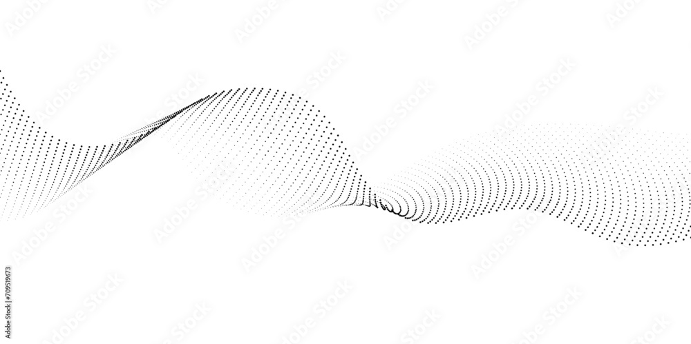 Halftone flowing wavy gradient dots shape isolated on transparent background - digital future technolWall mural