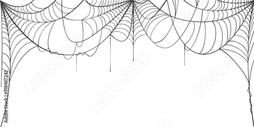 The watermark will not be included on Wall mural.: Halloween horizontal frame black cobweb on transparent background ilustration vector - halloween conc