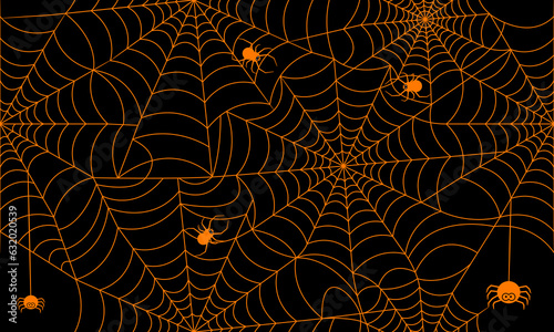 Wall mural : Halloween spider web seamless pattern with black and orange - vector repeating background -