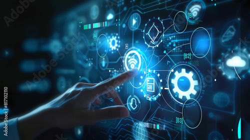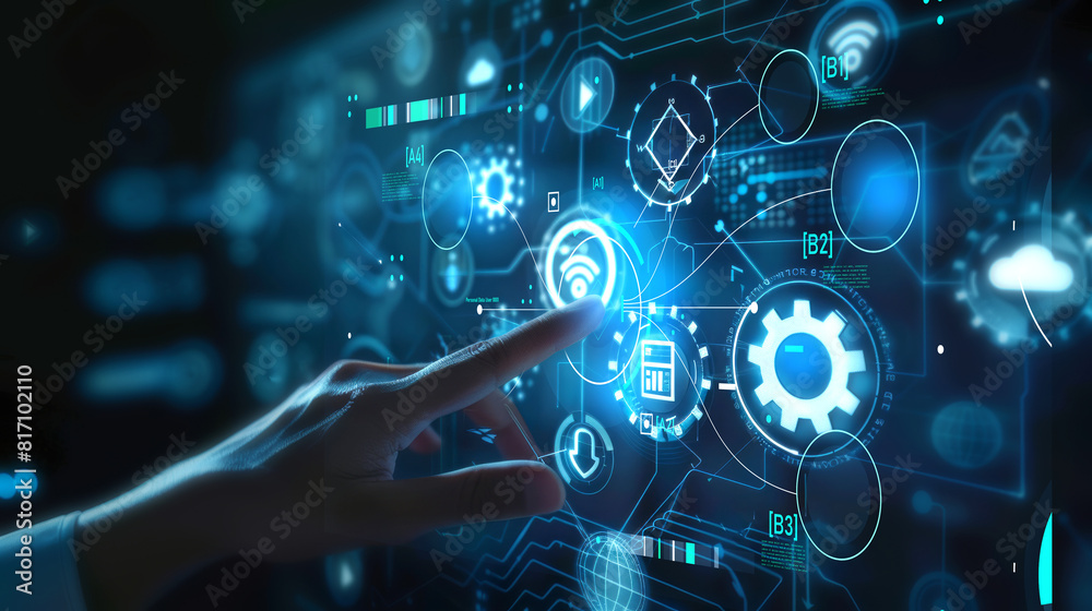 Wall mural hand close up, computer coding prompt cyber security computer network internet futuristic background - Wall murals Wall mural hand close up, computer coding prompt cyber security computer network internet futuristic background - Wall murals