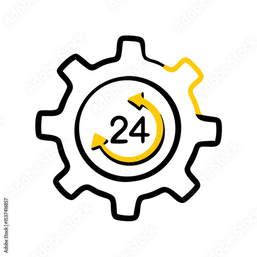 Wall mural hand draw gear with 24 hour clock icon on transparent background for web and graphic design