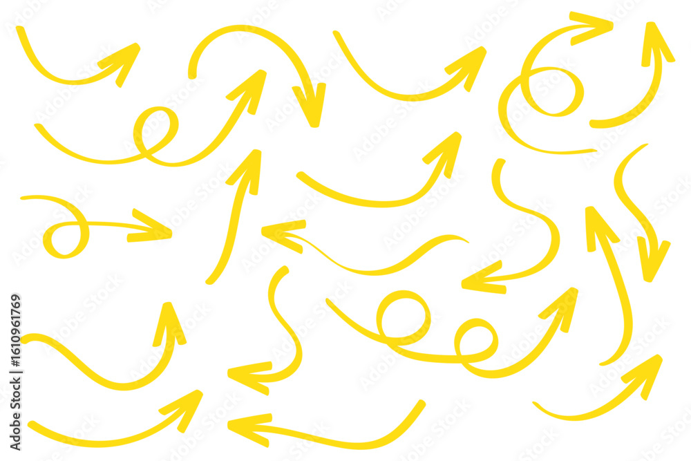 The watermark will not be included on Wall mural.: Hand drawn arrows icon set - sketch curved arrows design - arrow handmade - doodle arrows of varios sha
