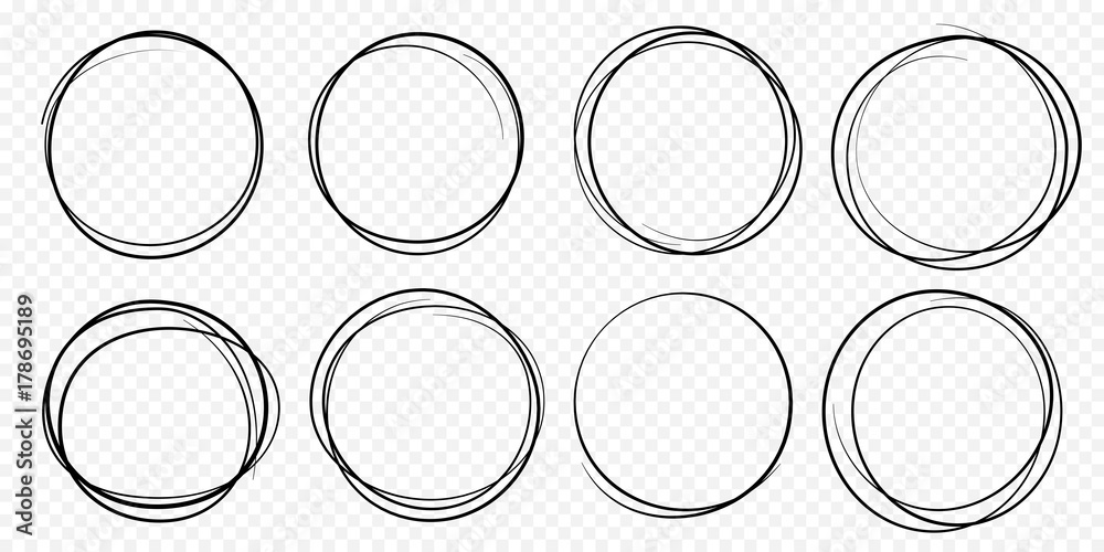The watermark will not be included on Wall mural.: Hand drawn circle line sketch set - vector circular scribble doodle round circles for message note ma