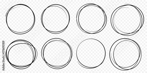 Hand drawn circle line sketch set - vector circular scribble doodle round circles for message note maWall mural