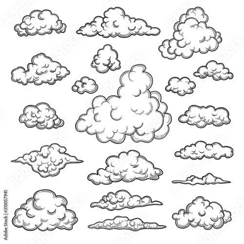 The watermark will not be included on Wall mural.: Hand drawn clouds - weather graphic symbols decorative sky vector nature objects vector cloud collect