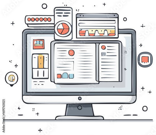 Wall mural hand drawn computer monitor with software application windows data charts and creative interface gra - Wall murals Wall mural hand drawn computer monitor with software application windows data charts and creative interface gra - Wall murals