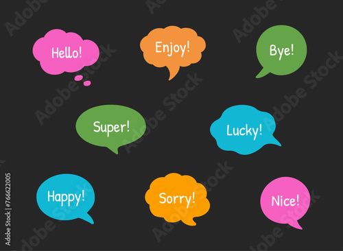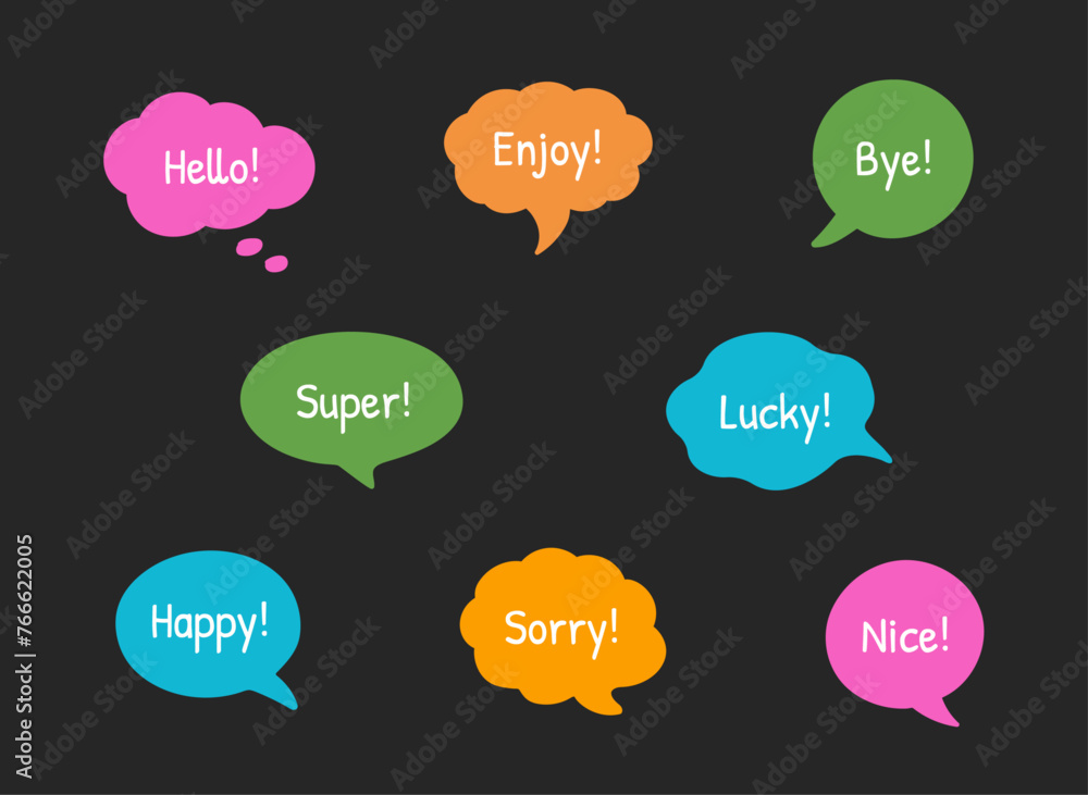 The watermark will not be included on Wall mural.: Hand-drawn doodle speech bubble frames - set of the colorful vector text boxes isolated on a black ba