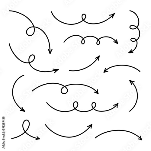 The watermark will not be included on Wall mural.: Hand drawn line arrows set - vector line design elements isolated on white background -