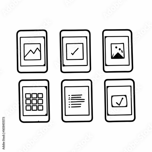 The watermark will not be included on Wall mural.: Hand drawn mobile application interface icons isolated on white background in vector format