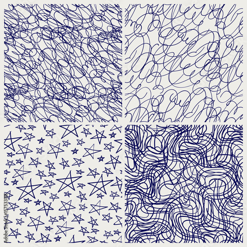 Wall mural : Hand drawn scribble seamless patterns - vector abstract ballpoint pen sketched seamless texture set
