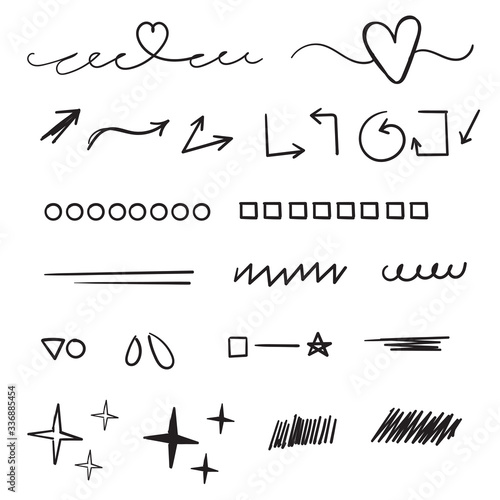 Wall mural hand drawn set of doodle elements. black and white linear pattern. sketch style vector collection. c - Wall murals Wall mural hand drawn set of doodle elements. black and white linear pattern. sketch style vector collection. c - Wall murals