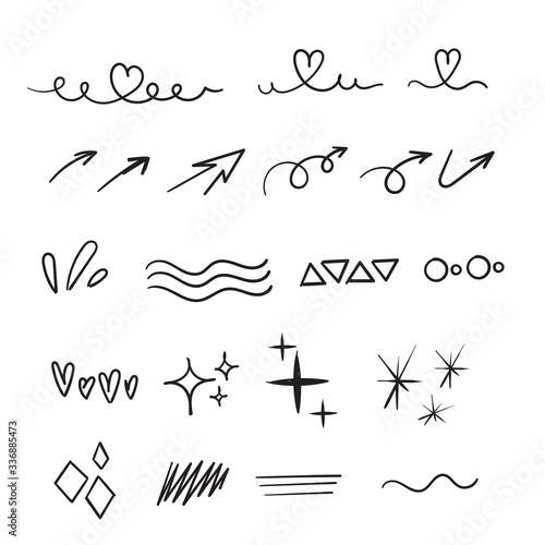 Wall mural hand drawn set of doodle elements. black and white linear pattern. sketch style vector collection. c - Wall murals Wall mural hand drawn set of doodle elements. black and white linear pattern. sketch style vector collection. c - Wall murals