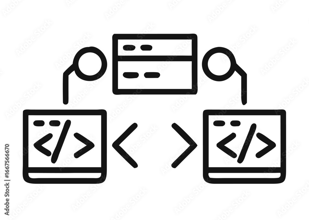 Wall mural : Hand drawn software code doodle icon set featuring programming symbols and development elements in a