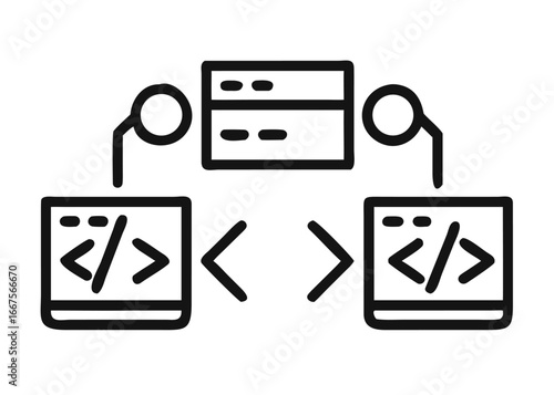 The watermark will not be included on Wall mural.: Hand drawn software code doodle icon set featuring programming symbols and development elements in a