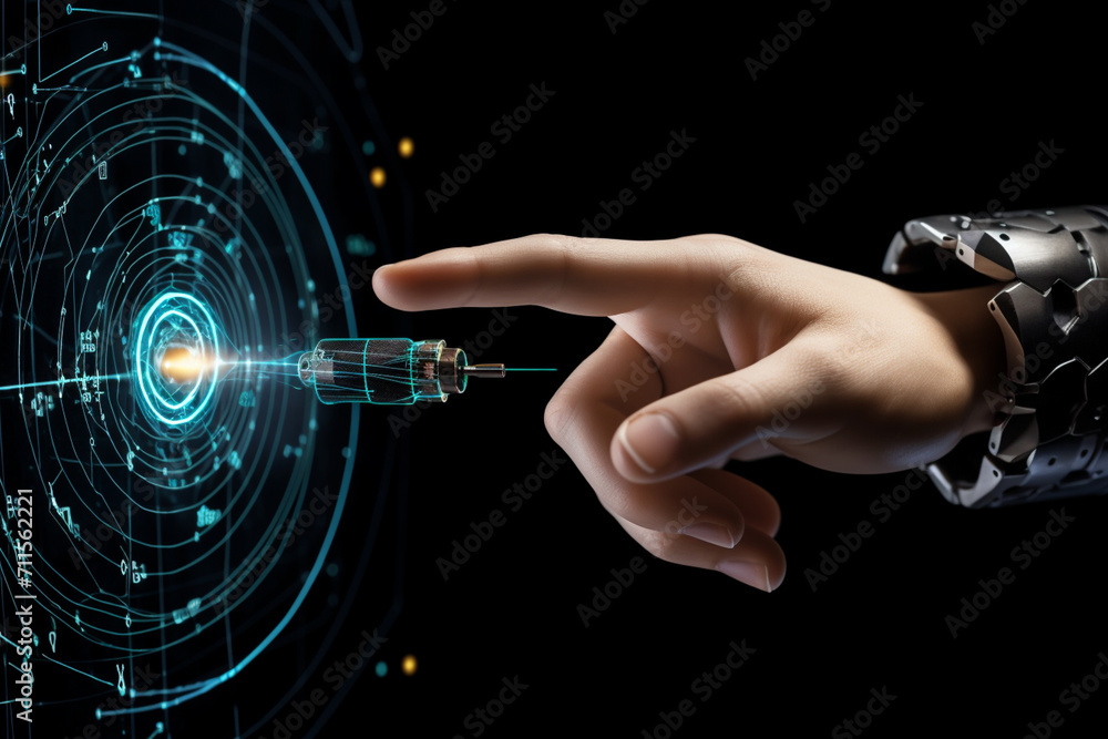 Wall mural hand fingers pointing and target on dark background by generative ai. - Wall murals Wall mural hand fingers pointing and target on dark background by generative ai. - Wall murals