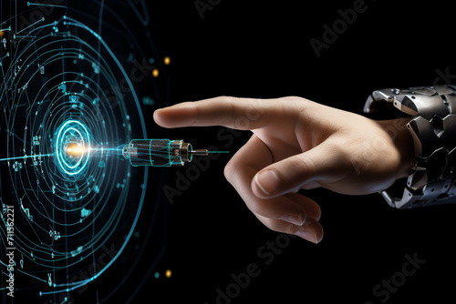 Hand fingers pointing and target on dark background by generative ai - Wall mural