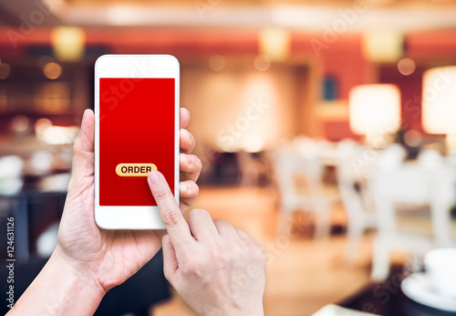 Wall mural : Hand holding mobile with order button and empty screen for addin
