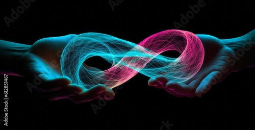 Wall mural hand holding virtual reality infinity symbol community connection of metaverse world global network  - Wall murals Wall mural hand holding virtual reality infinity symbol community connection of metaverse world global network - Wall murals