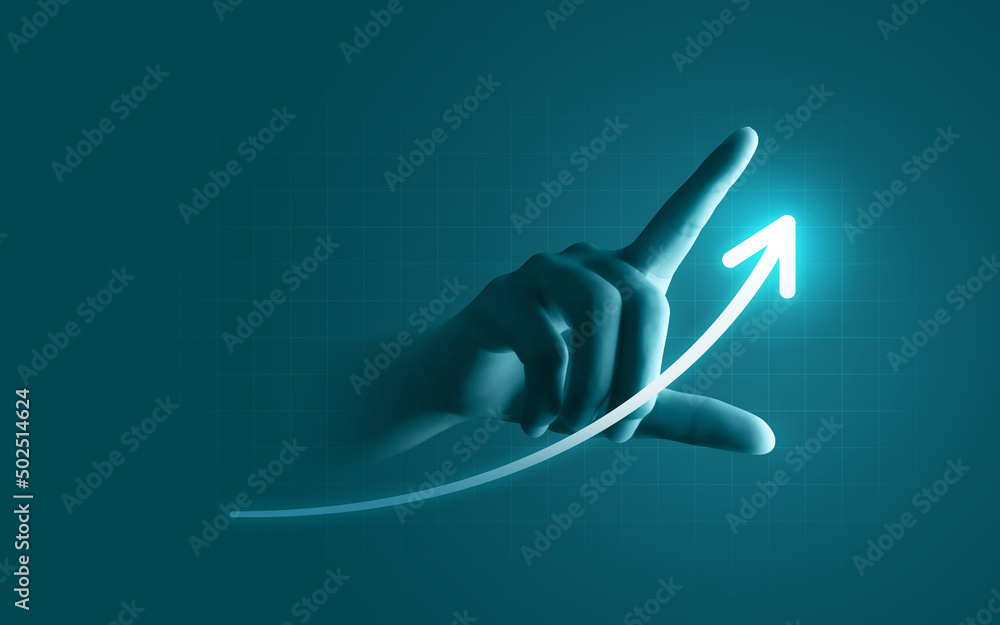 Wall mural hand pointing growth arrow success business target background of up icon direction development graph - Wall murals Wall mural hand pointing growth arrow success business target background of up icon direction development graph - Wall murals