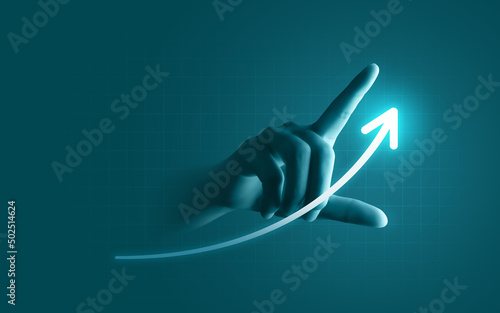 Wall mural hand pointing growth arrow success business target background of up icon direction development graph