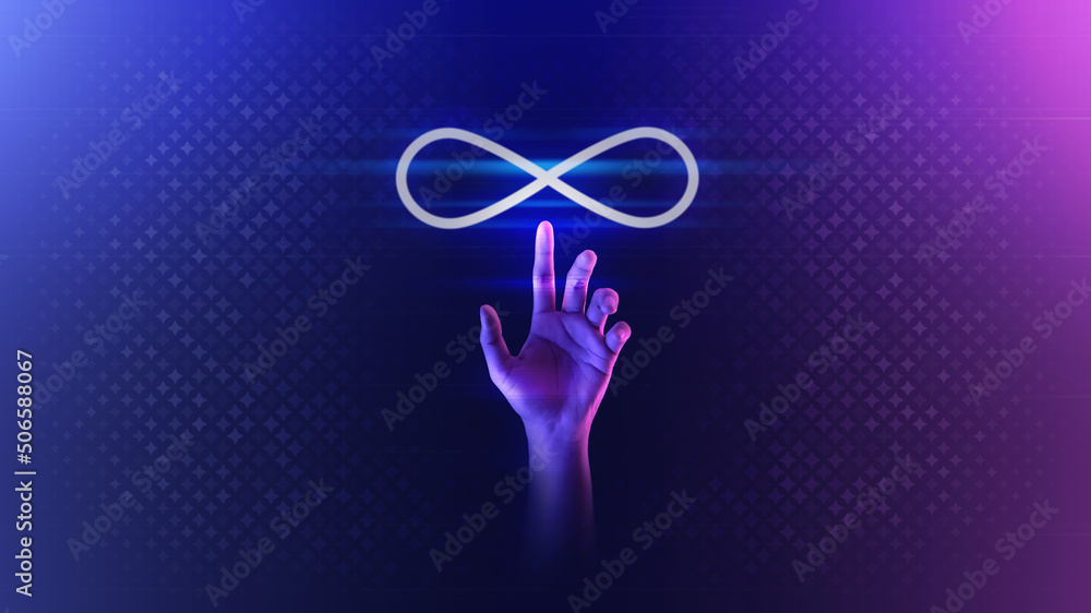 Wall mural : Hand touch metaverse infinite loop unlimited technology futuristic digital connection background of