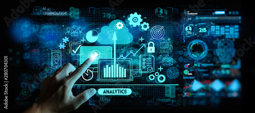 Wall mural hand touching business data analytics process management with kpi financial charts and graph and aut - Wall murals Wall mural hand touching business data analytics process management with kpi financial charts and graph and aut - Wall murals