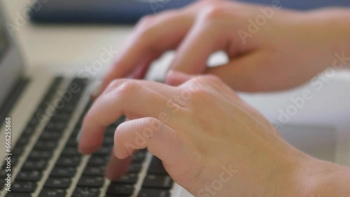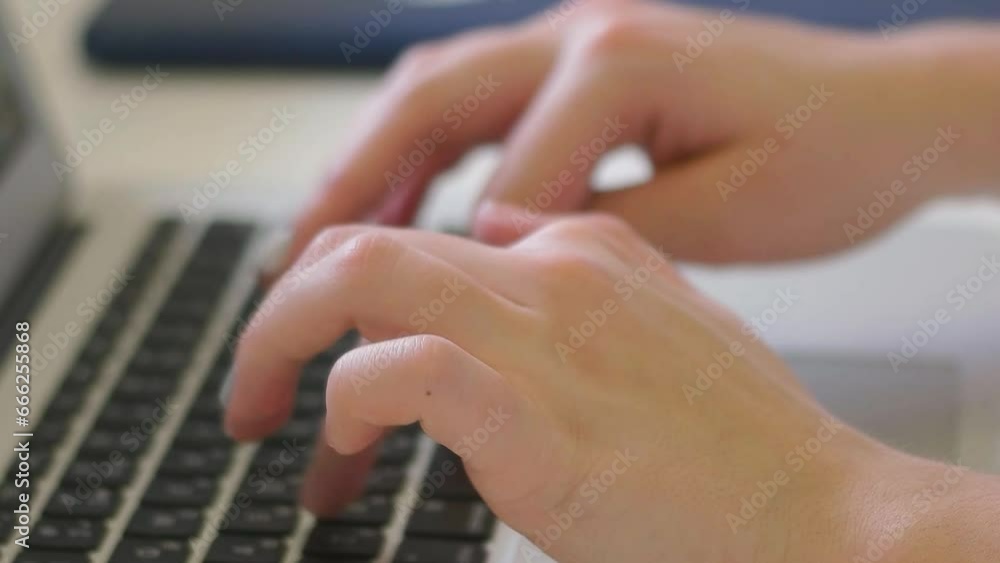 The watermark will not be included on Wall mural.: Hands typing on a laptop or computer keyboard to send emails and surf the web in the office