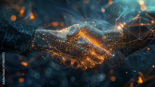 Wall mural handshake between digital partners. digital twins and artificial intelligence processes for computer - Wall murals Wall mural handshake between digital partners. digital twins and artificial intelligence processes for computer - Wall murals