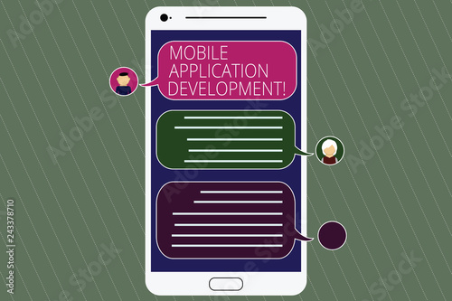 Wall mural handwriting text mobile application development. concept meaning writing software for digital device