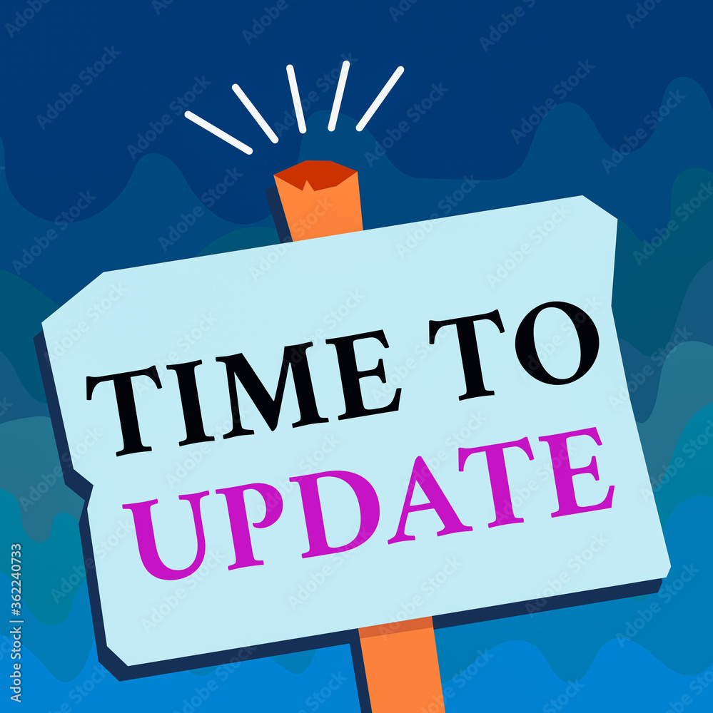 Wall mural handwriting text time to update. conceptual photo system software update for enhancement or compatib