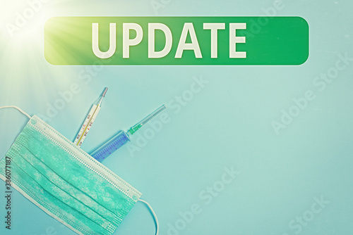 Wall mural : Handwriting text update - conceptual photo by adding up to date information or making corrections to