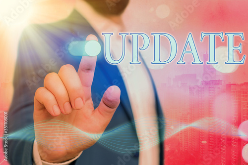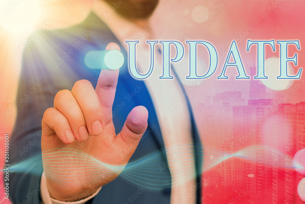 Wall mural : Handwriting text update - conceptual photo make something more modern adding new facts changing its d