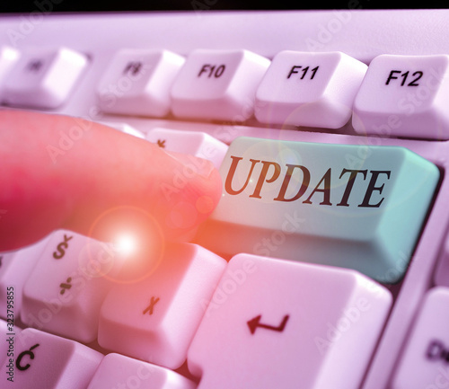 Wall mural : Handwriting text update - conceptual photo make something more modern adding new facts changing its d