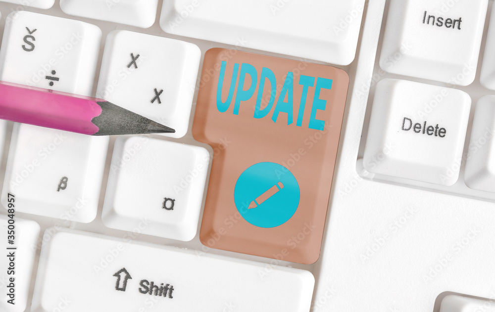 Wall mural : Handwriting text update - conceptual photo make something more modern adding new facts changing its d