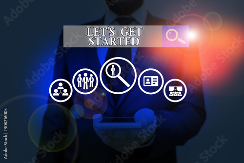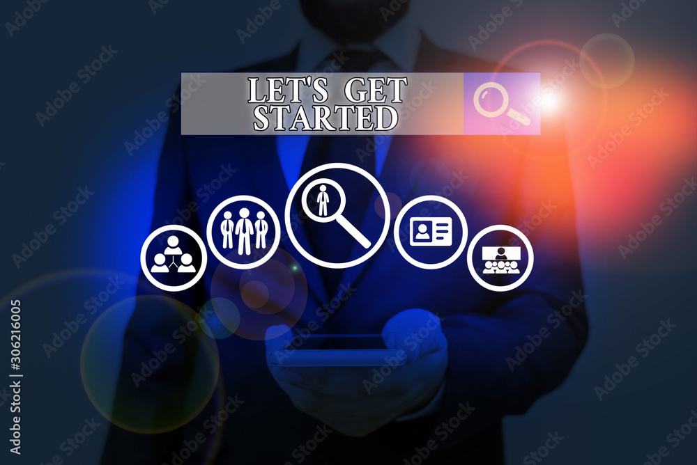 The watermark will not be included on Wall mural.: Handwriting text writing let s get started - conceptual photo to begin doing or working on something