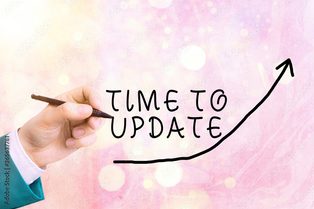 Wall mural : Handwriting text writing time to update - conceptual photo system software update for enhancement or