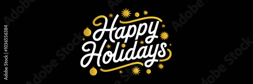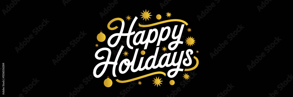 Wall mural happy holidays text banner or header in white and gold on black - Wall murals Wall mural happy holidays text banner or header in white and gold on black - Wall murals
