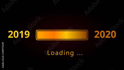 Wall mural happy new year 2020 numbers with shiny golden loading bar and text isolated on black background. hol
