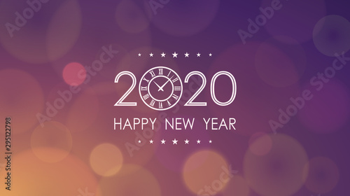 The watermark will not be included on Wall mural.: Happy new year 2020 with clock and abstract lens flare pattern in vintage color background