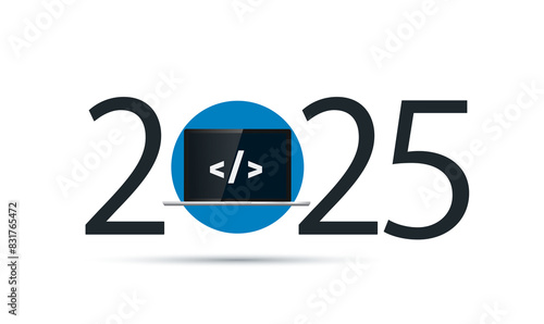 Wall mural : Happy new year 2025 year 2025 with laptop and programming code on screen