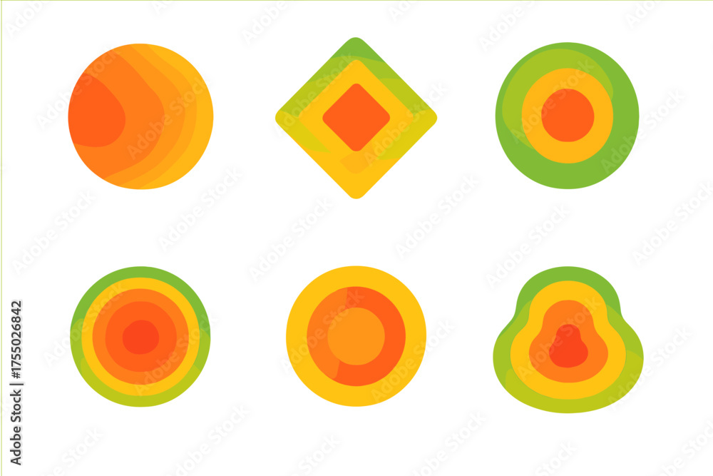 Wall mural : Harmonious Heatmap Logos - Heatmapping - Set Logo of Heatmapping: circular gradient hot spot - harmonious logo variations of the same emblematic concept, each