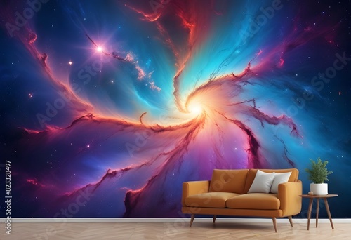 Harmonious nebula cloud patterns swirling in an abstract cloud shape isolated on a transparent backgWall mural