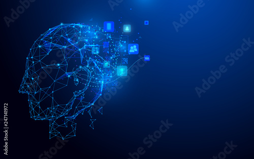 Wall mural : Head and social icons from lines, triangles and particle style design - illustration vector